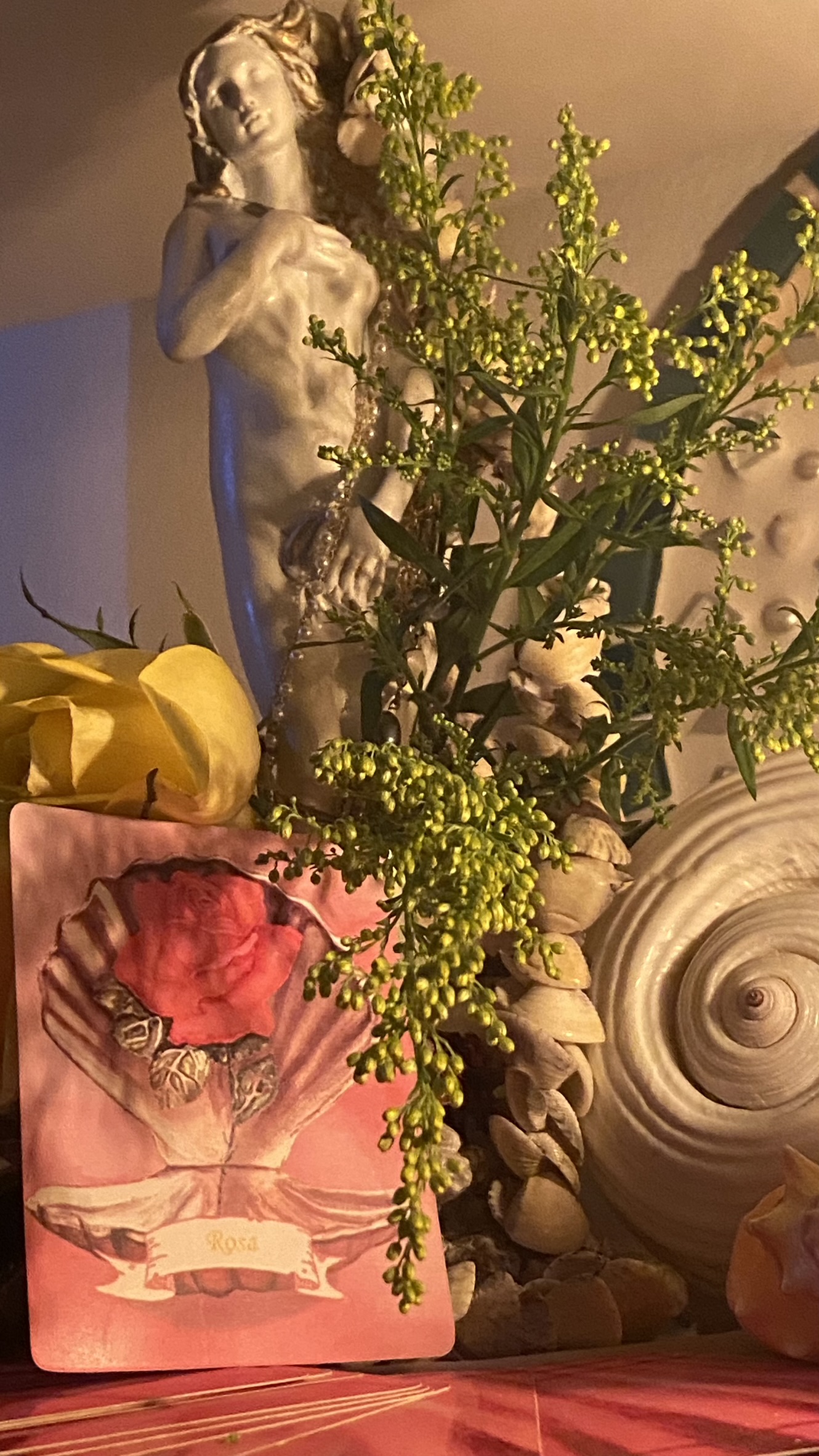 Stella Maris é bruxa, terapeuta, oraculista e sacerdotisa da Deusa, com um caminho dedicado ao culto e aos mistérios de Afrodite, iniciado em 2017. Sua vivência com a deusa aprofundou-se por meio de processos espirituais, terapêuticos e de estudo simbólico, integrando sexualidade sagrada, feitiçaria e autoconhecimento. É criadora de um oráculo autoral ilustrado em aquarela, canalizado e materializado durante a pandemia, fruto de uma relação devocional profunda com Afrodite. Seu trabalho aborda tanto a luz quanto a sombra do amor, unindo espiritualidade, psicanálise e práticas oraculares, e honrando o resgate do divino feminino como força viva, ancestral e necessária nos tempos atuais.