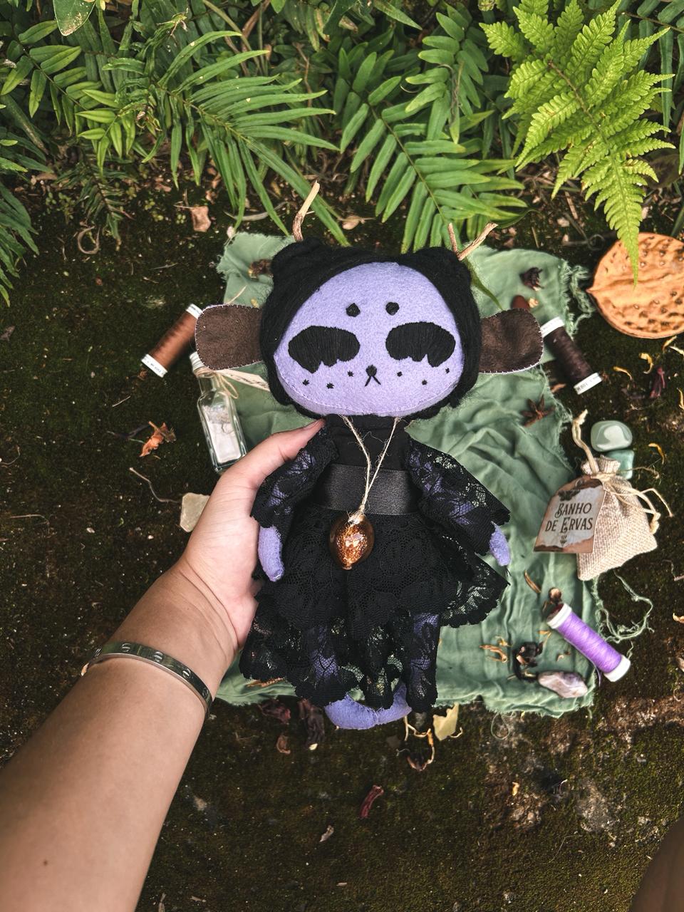 Angélica, conhecida como Tecelã da Noite, desenvolve seu ofício sob a égide de Nyx, criando bruxinhas e amuletos de energia viva, tecidos à mão a partir da escuta, da intuição e do saber ancestral. Seu trabalho acontece em processos ritualísticos realizados sob o manto da noite, guiados energeticamente para cada pessoa, respeitando a singularidade de cada história, intenção e caminho espiritual. As Bruxinhas Nyx são amuletos vivos, costurados de forma intuitiva conforme a energia do momento e de quem as recebe. Em sua criação, são escolhidas ervas, pedras naturais, símbolos e elementos que sustentam proteção, cura, prosperidade, conexão espiritual e fortalecimento pessoal. Não são apenas objetos, mas companheiras e guardiãs, pontes entre o mundo visível e o espiritual. Mais do que peças artesanais, cada bruxinha é um ponto de ancoragem energética, criada com presença, cuidado e magia aplicada em cada detalhe. Seu trabalho honra a noite, a ancestralidade e o saber das mulheres que vieram antes — bruxas que sentiram, criaram e resistiram, jamais apagadas. Aqui, a magia é artesanal, consciente e feita para quem sente o chamado.